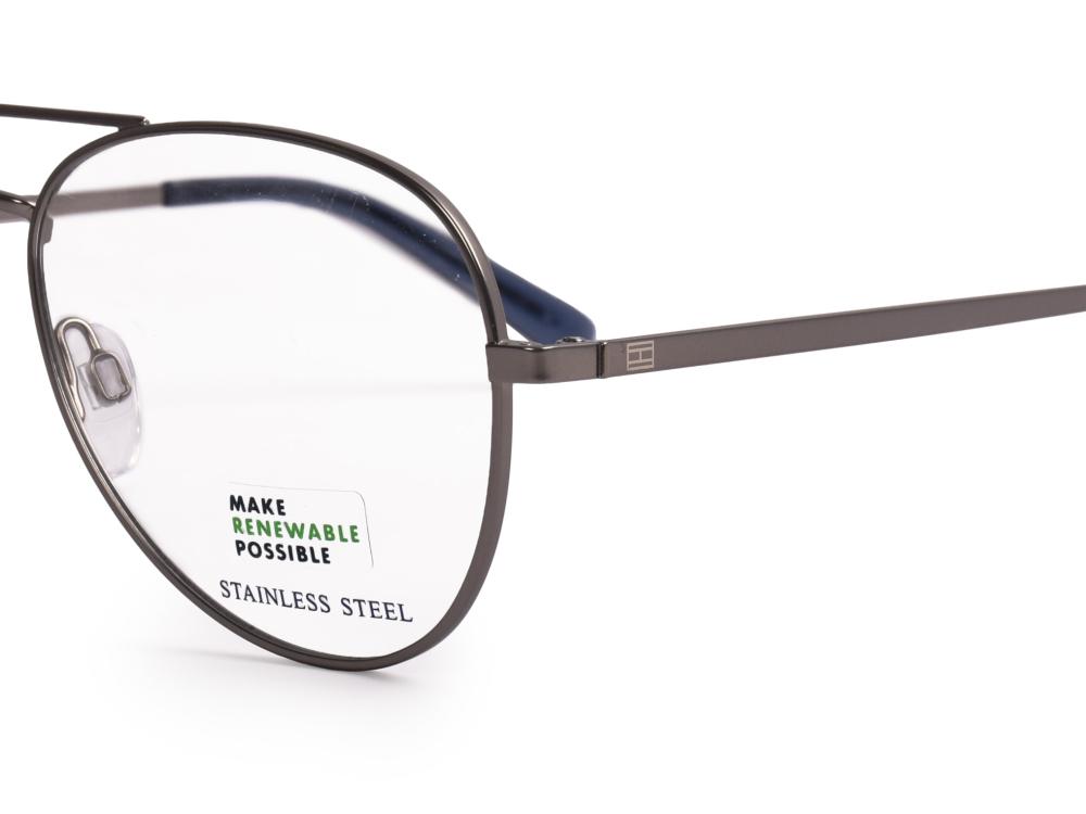 فريم تومي مصنوع من ستانلس ستيل بلون رمادي داكن بتصميم كلاسيكي أنيق وعدسات مثبتة بإطار معدني رفيع وجسر العلوي معدني مستقيم يضيف لمسة عصرية وذراعان معدنيان رفيعان بنفس اللون الرمادي مع أطراف بلاستيكية باللون الأزرق الداكن مزينة بخطوط بألوان الأحمر والأبيض لإضفاء لمسة مميزة و وسادات الأنف شفافة ومريحة مما يجعل الفريم مناسبا للاستخدام اليومي التصميم أنيق مع لمسات عصرية تناسب مختلف الأذواق