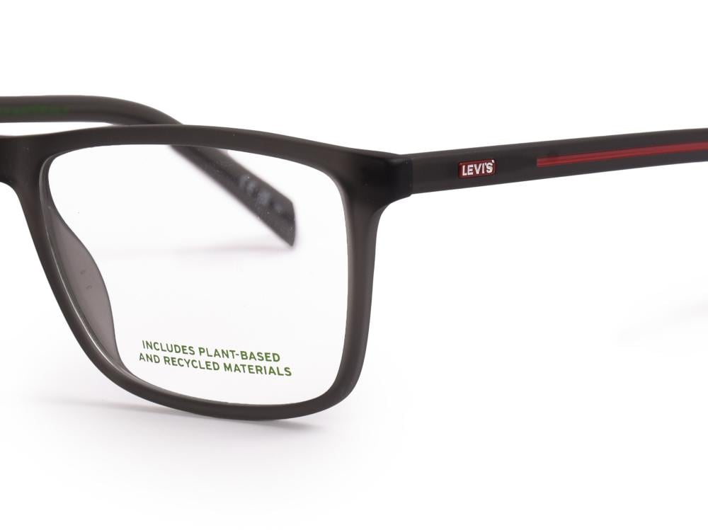 فريم ليفايز مستطيل مصنوع من البلاستيك باللون الاسود مطفي يتميز بتصميم عملي وذراعين باللون الاسود مع شريط باللون الاحمر يمتد على طول الذراعين وشعار ليفايز باللون الاحمر على الجوانب الاطراف منحنية قليلا لتوفير راحة عند الارتداء وتصميم يعكس مظهرا عصريا يناسب الاستخدام اليومي