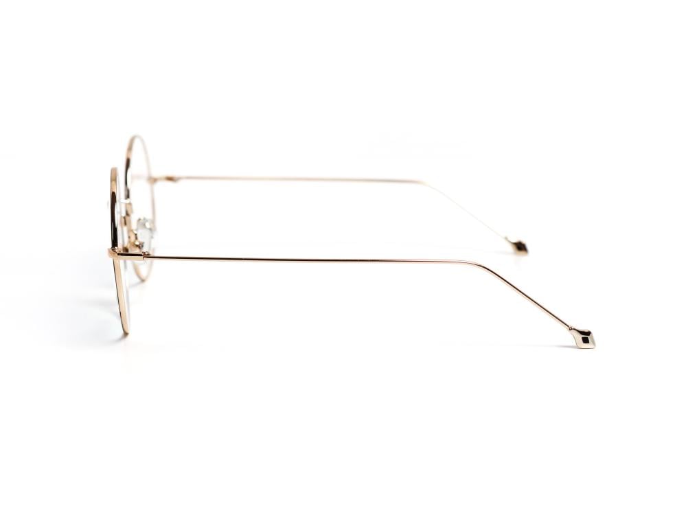 فريم كايدي دائري بسيط مصنوع من المعدن الذهبي خفيف الوزن مع ذراعين نحيفين واطراف سوداء تصميم انيق وعصري يناسب مختلف الاطلالات