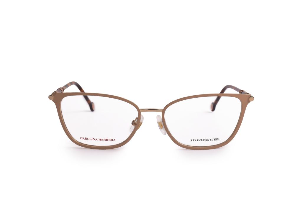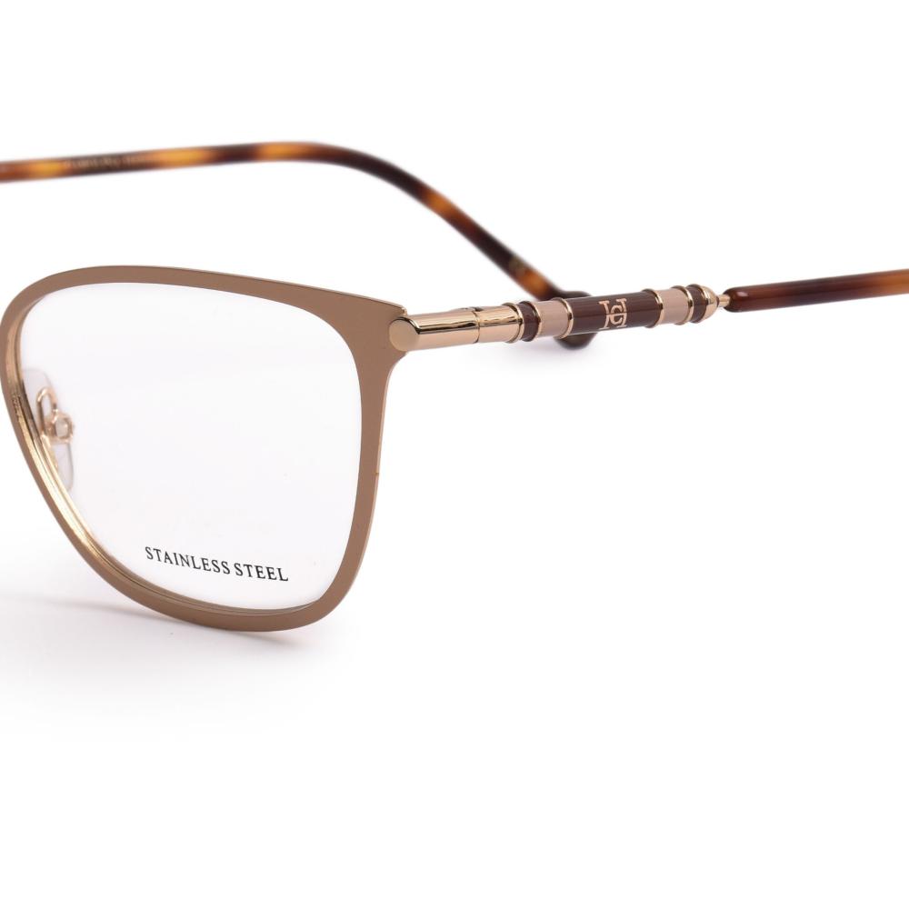 فريم كارولينا هيريرا مصنوع من ستانلس ستيل عالي الجودة باللون الذهبي المائل للبني يتميز بتصميم عصري وأنيق يناسب مختلف أشكال الوجه وذراعين مصنوعان من المعدن بنفس اللون مع تفاصيل بنقشة بلون بنية تضيف لمسة من الفخامة وإطار خفيف الوزن ومريح تصميمه يعكس الأناقة مما يجعله خيارا مثاليا للاستخدام اليومي