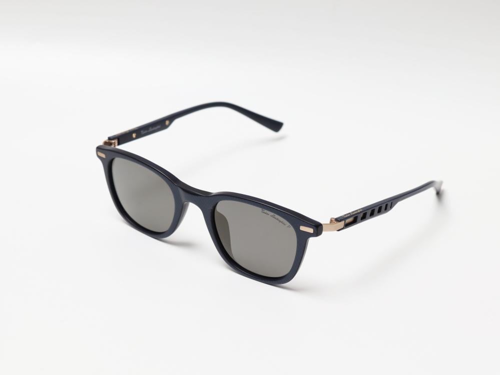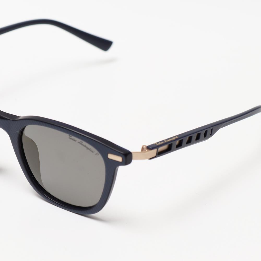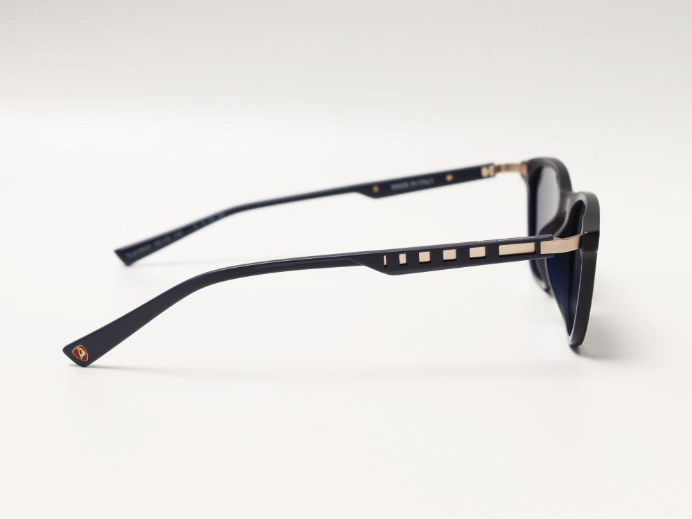 نظارة لامبورغيني تتميز بتصميم رياضي أنيق مصنوعة من خامات عالية الجودة بلون أزرق غير لامع مع تفاصيل ذهبية تضيف لمسة فاخرة الإطار خفيف الوزن ومتين مع عدسات داكنة توفر حماية من أشعة الشمس الضارة واذرع مصممة بشكل مبتكر مع فتحات هندسية تضفي طابعاً عصرياً ومميزاً تناسب الاستخدام اليومي وتجمع بين الأداء العملي والمظهر الجذاب